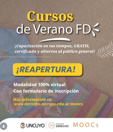 Desde la Dirección de Relaciones Institucionales y Escuela de Gobierno de la H. Cámara de Senadores de Mendoza, difundimos la reapertura de los MOOCS, cursos online masivos, abiertos, gratuitos y asincrónicos, diseñados para la formación continua en diversas áreas del derecho pertenecientes a la Facultad de Derecho de la UNCuyo y la Secretaría de Extensión, Vinculación y Graduados.