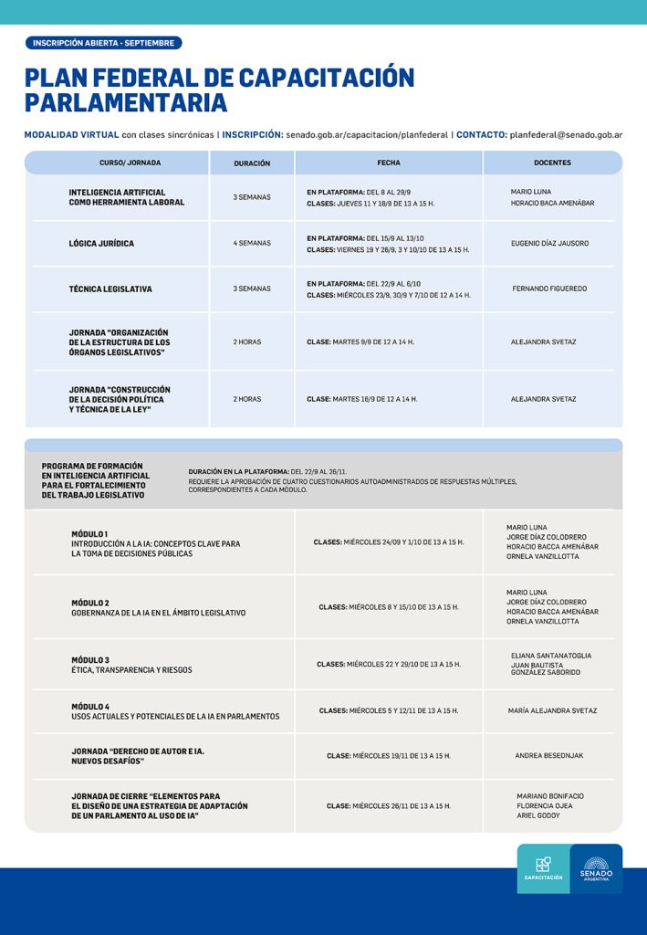 Más información e inscripción: https://www.senado.gob.ar/capacitacion/planfederal